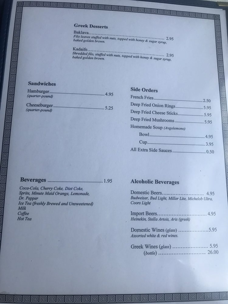 For sandwich lovers, classic options like the Grilled Cheese and Double Cheeseburger provide a satisfying American twist. And don’t miss the Mezethes, a delightful platter of gyro and marinated meats, perfect for sharing. Baklava, a sweet finale, offers a moist and rich contrast to the savory courses. With a warm atmosphere and attentive service, Olympic Flame is not just a meal; it’s an experience infused with Greek hospitality.